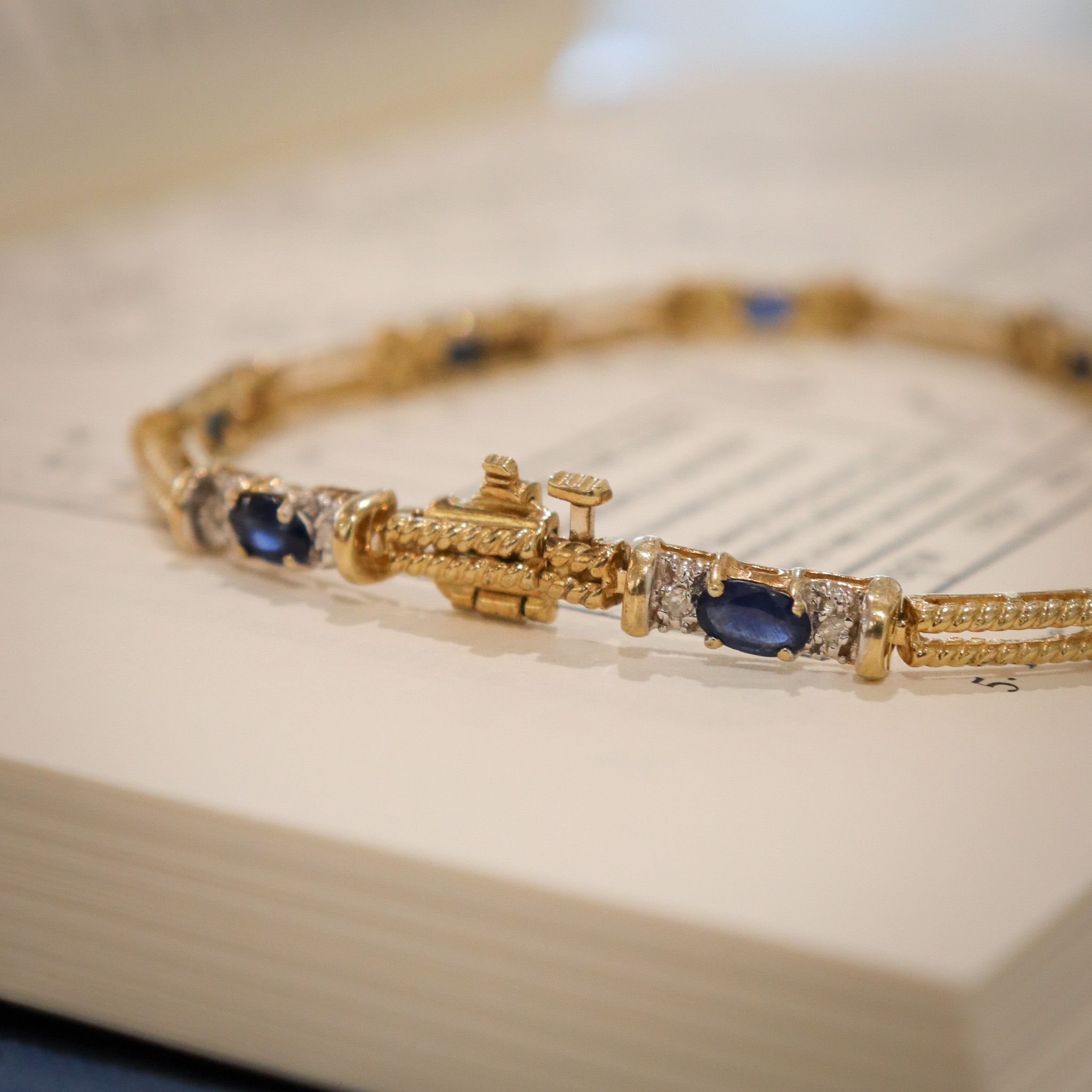 10kyw Sapphire & Diamond Tennis Bracelet