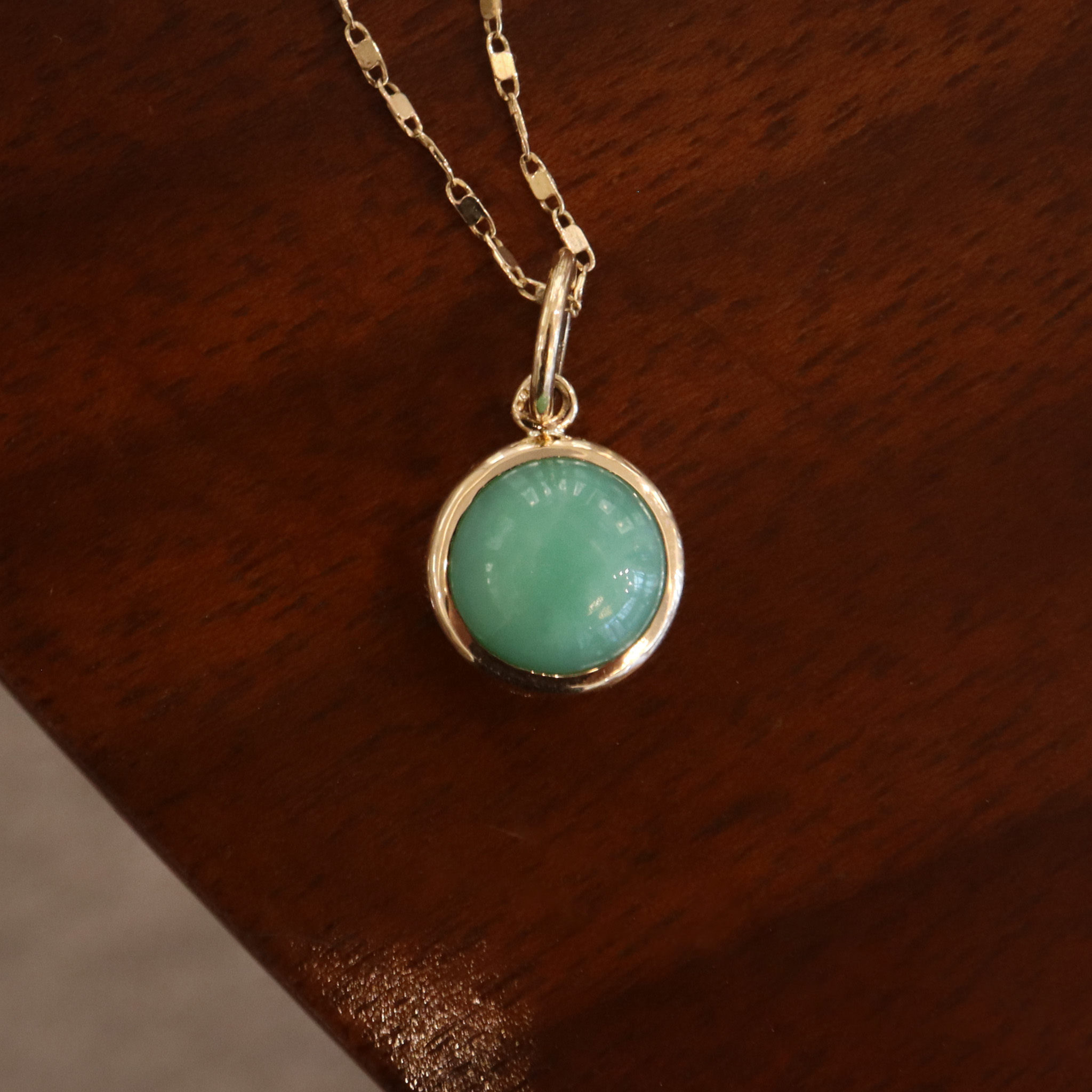 This minty green cabochon jade is a bright and feminine charm, perfect to wear as a pendant or bracelet charm.