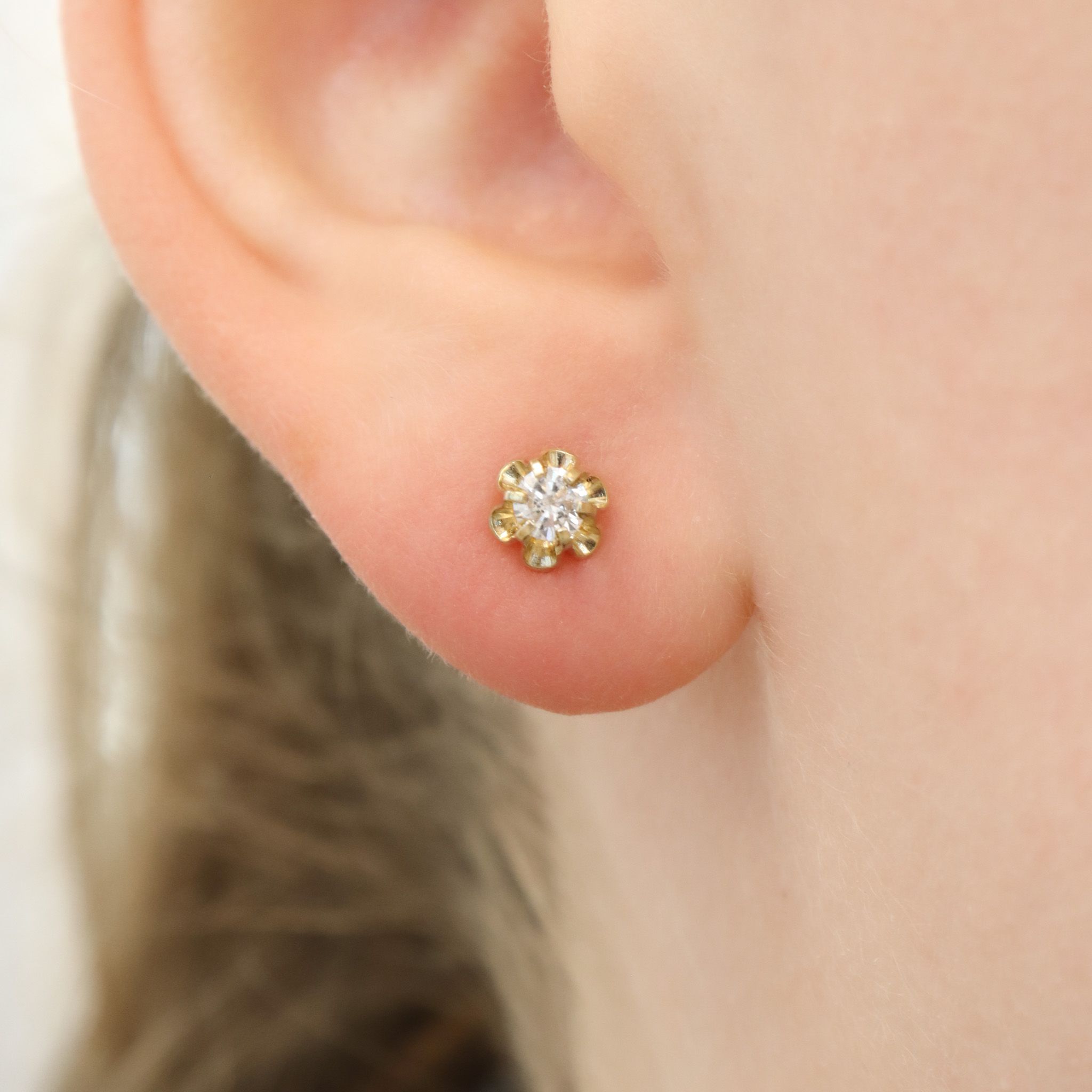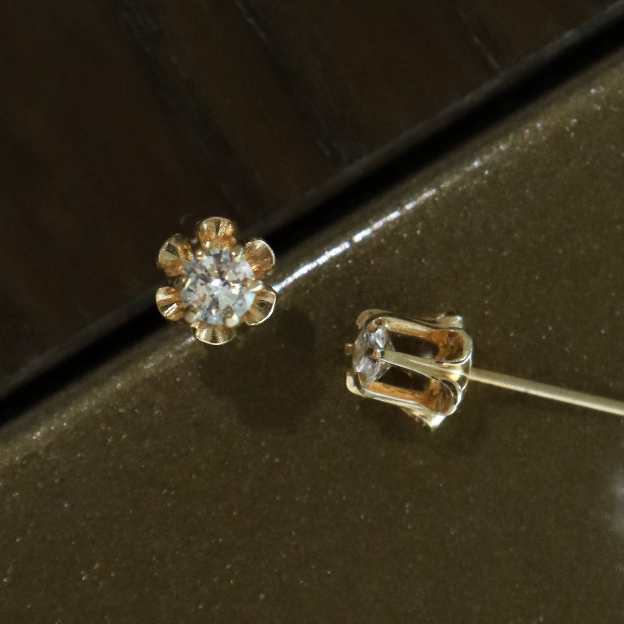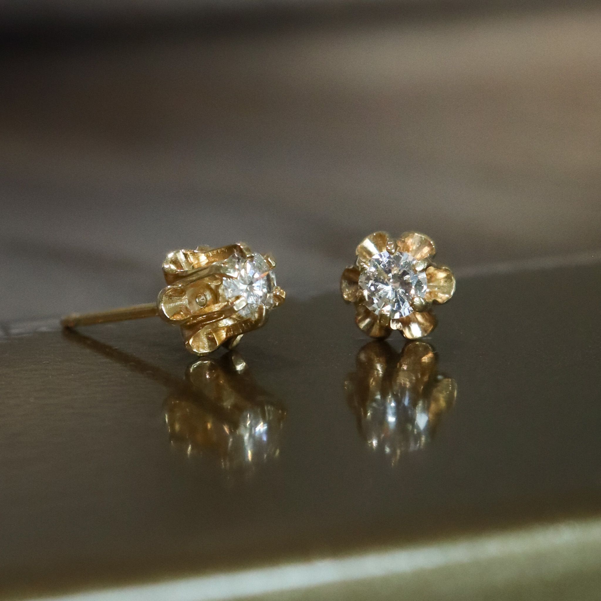 Elegantly embraced by six claws, the wearer will find approximately 1/4 carat total weight of diamonds in a warm yellow gold belcher setting.
