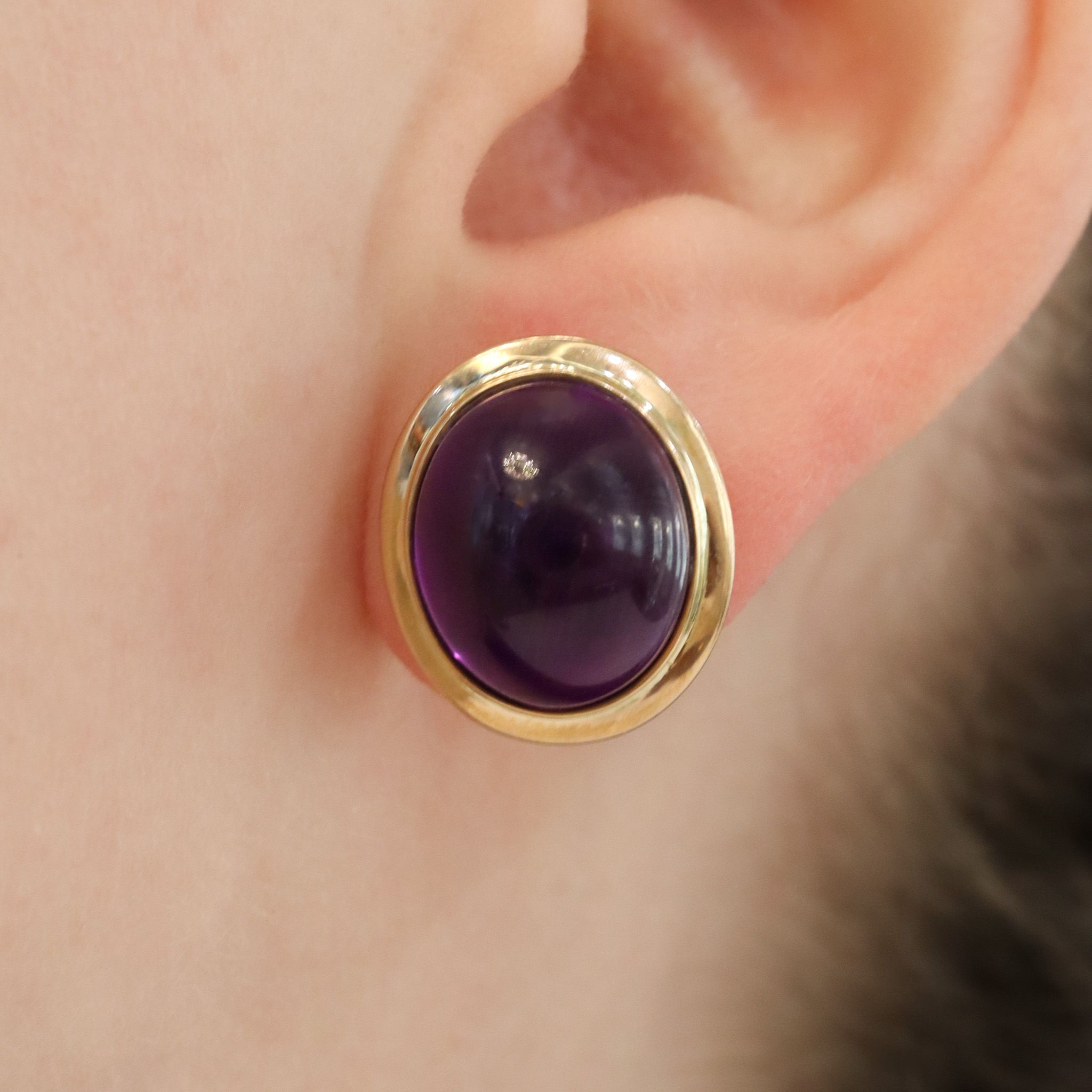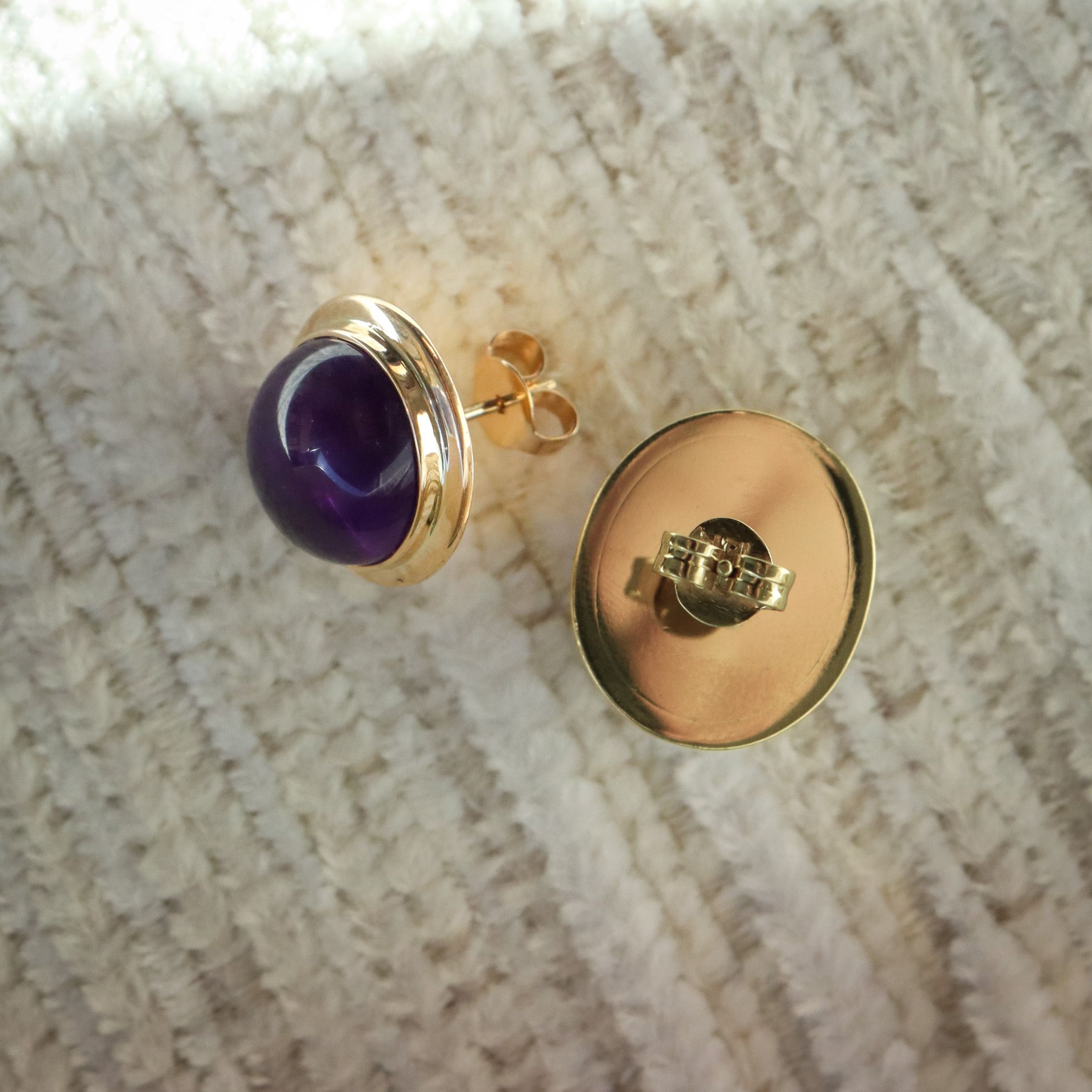 14ky Cabochon Amethyst Studs