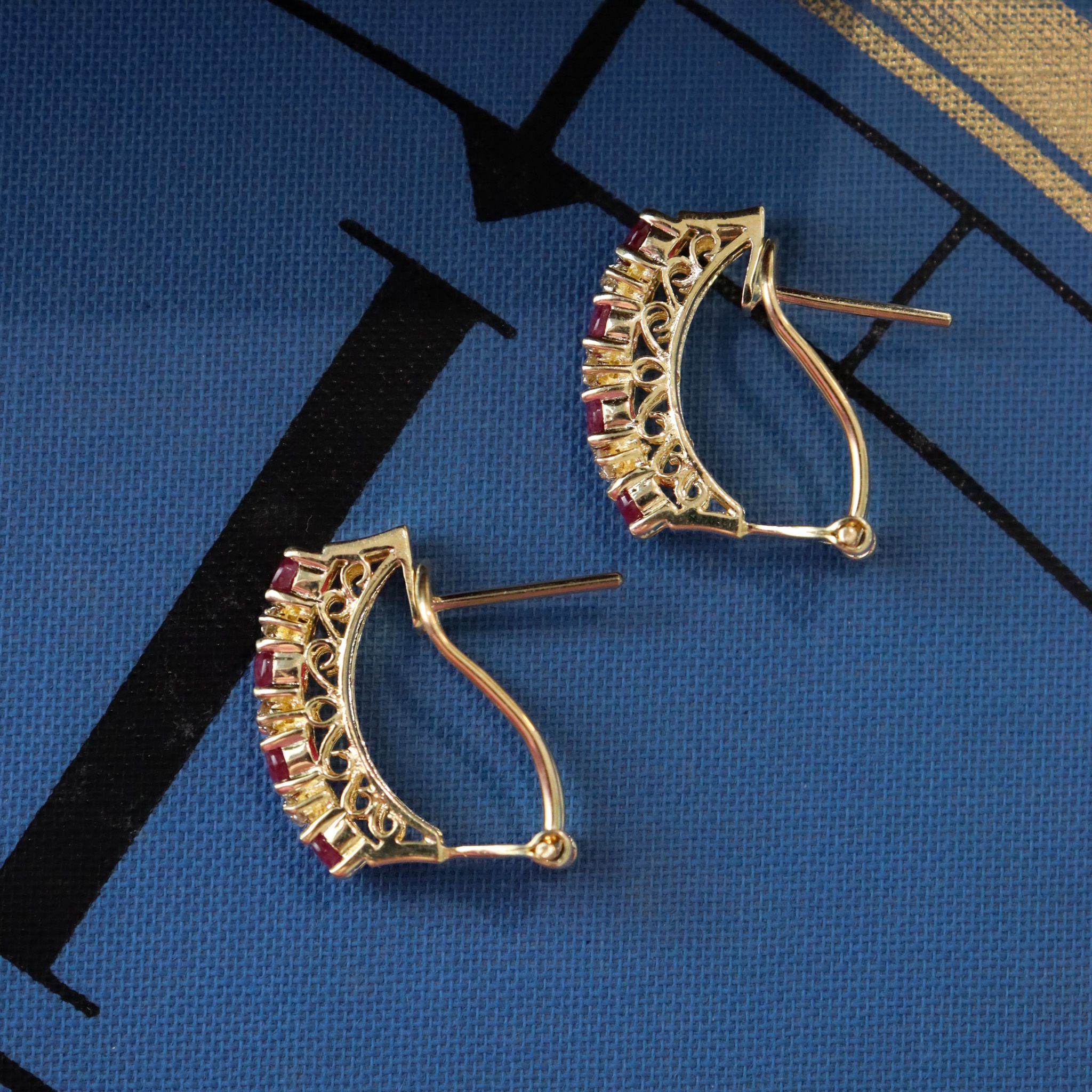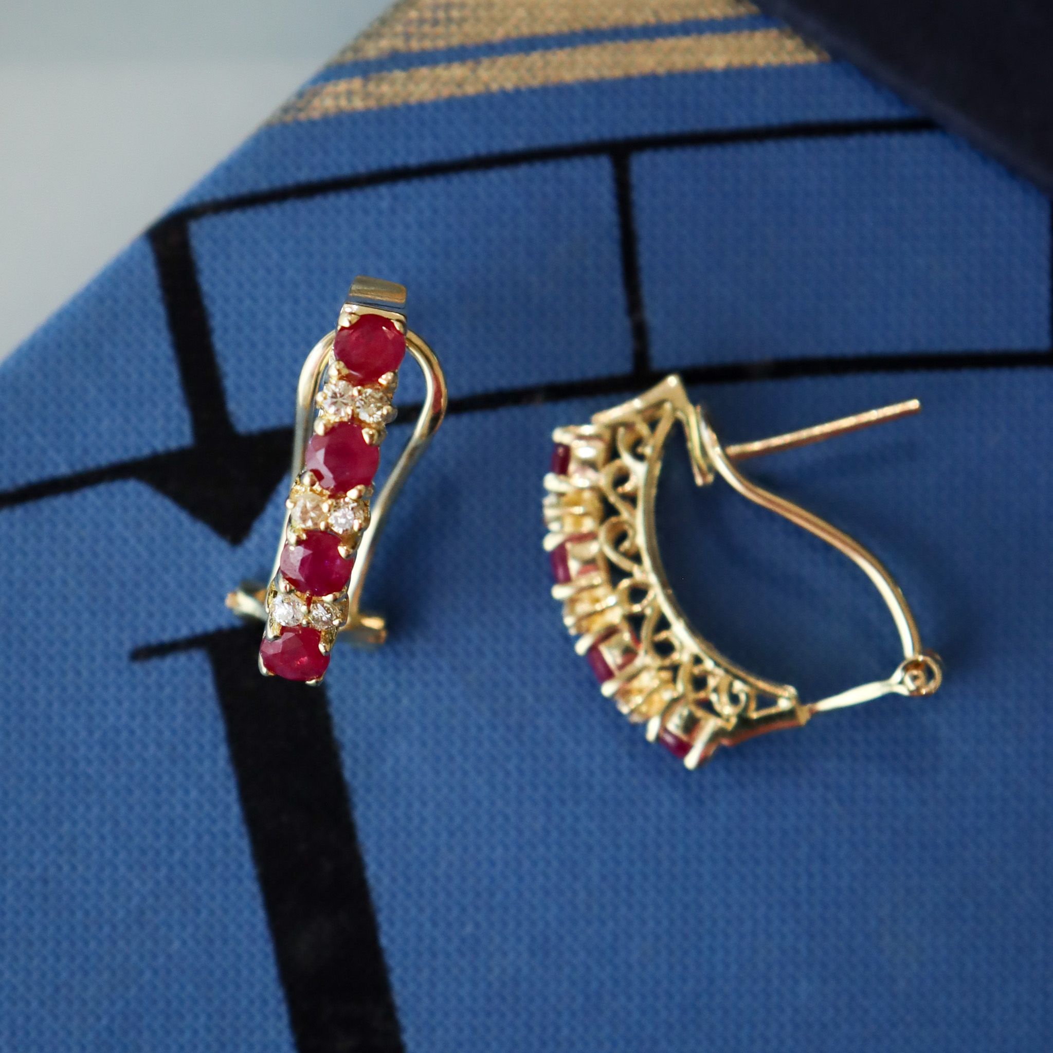 14ky Ornate Ruby & Diamond Half Hoops