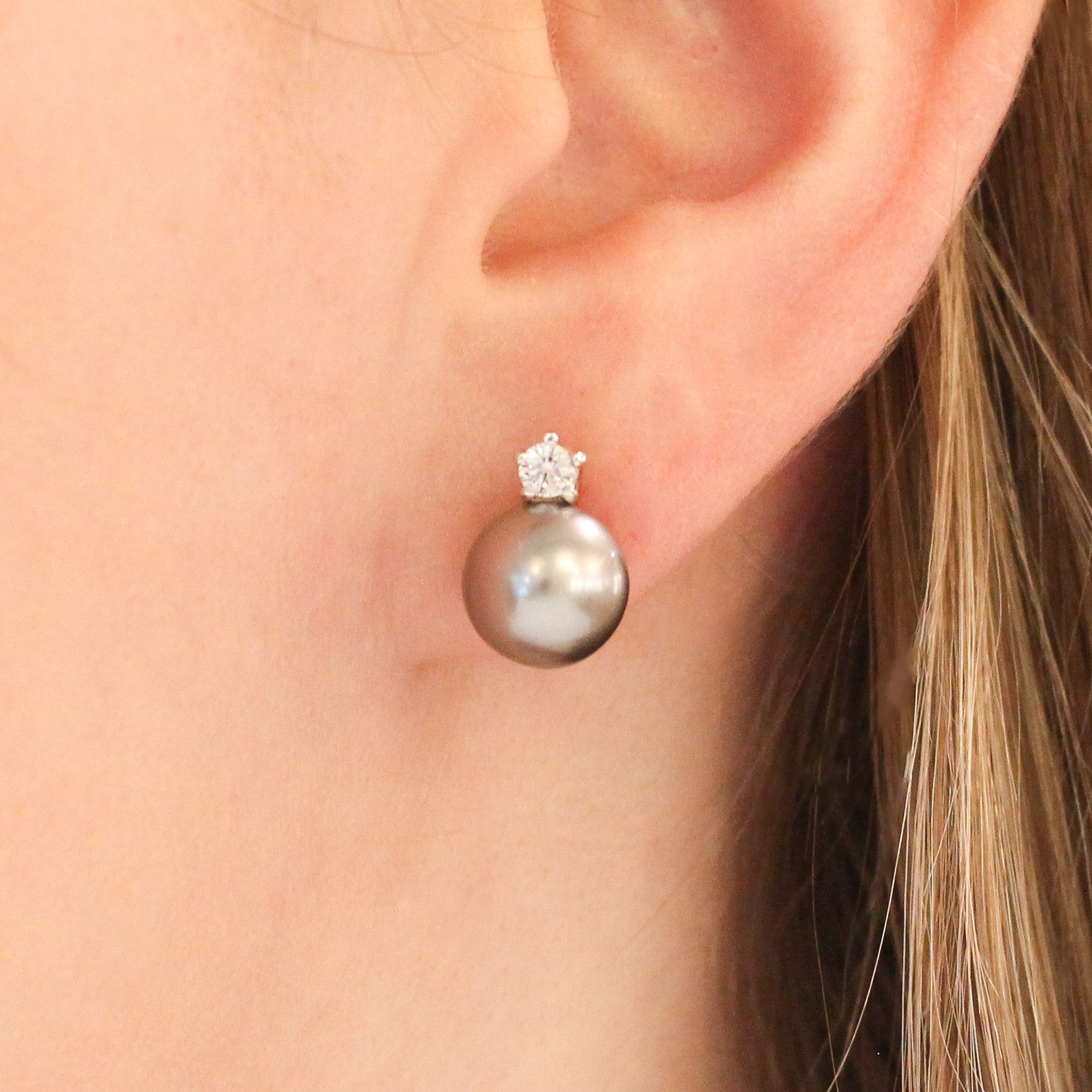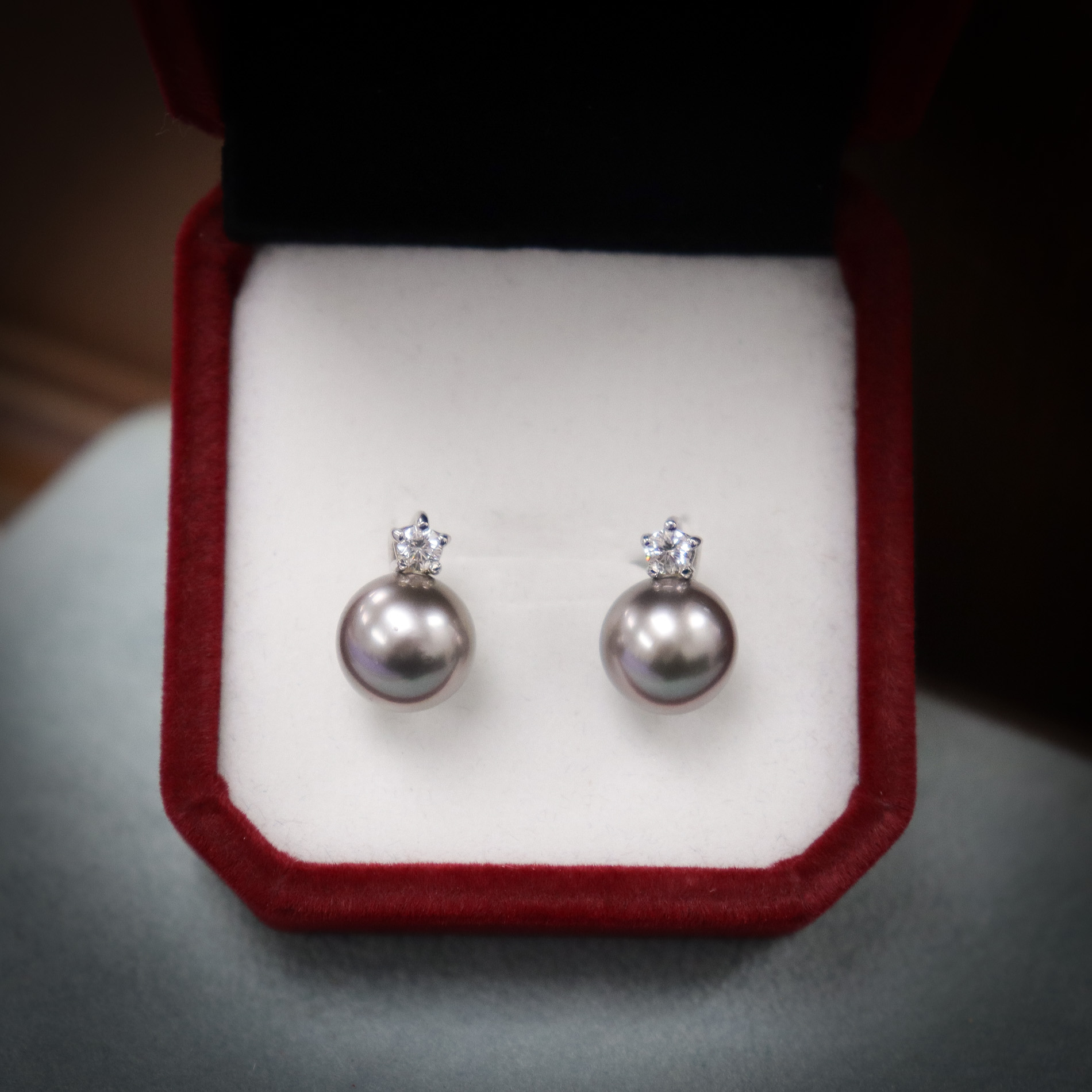 A classic pair of diamond and pearl studs, in a contemporary colour.