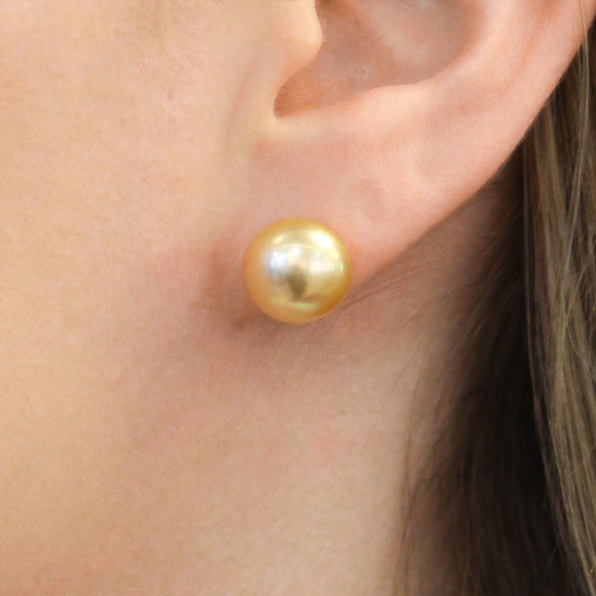 A sophisticated pair of 18k Golden South Sea pearl studs. These quality pearls are sure to elevate any outfit.
