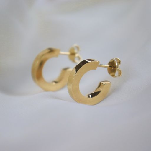 Fabricated in house, this medium pair of hoops are made to last. Chic & streamlined, these hoops are versatile from the gym to the boardroom. In 18k yellow gold, they are a classic choice. We dare you to drop them- this pair is made for everyday wear & tear. Available with or without stones, in 3 sizes.