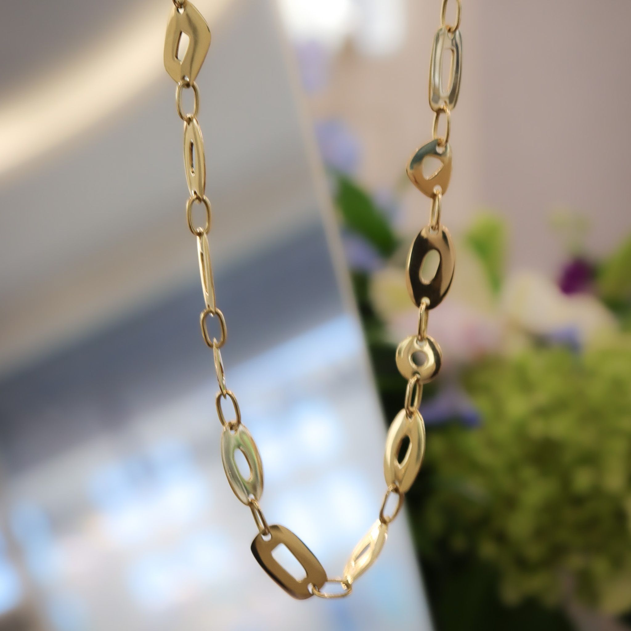 Joy, colour, & whimsy define Puzzle, Mattioli's iconic collection. The simple and solid gold toggle bar clasps into the largest puzzle piece of this necklace.
