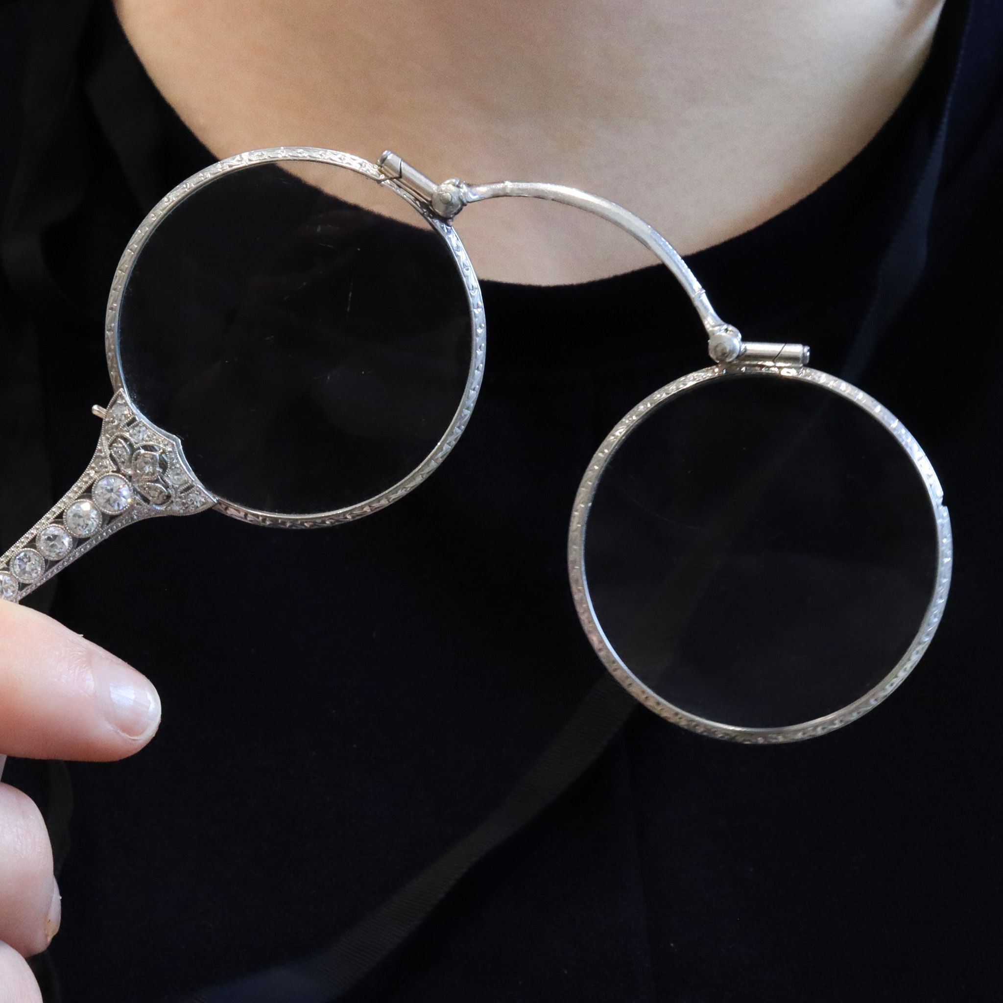 Commonly made from platinum, Edwardian jewellery was fabricated with great detail while still being lightweight and comfortable to wear. The technique of millegrain emerged, which is small beads of metal bordering a stone or added as a border around a piece. Paving the way for “White on White” fashion, Cartier became the official jewellery supplier to King Edward. The innovative approach to platinum with invisible settings and millegrain detail made Cartier a powerhouse of the era. Nearing 1910, “Black and White” took over from the “White on White” aesthetic. Platinum pieces containing pearls and diamonds were worn on black ribbons, and darker stones/enamel were used as accent details. After the start of World War I, life changed dramatically. Jewellery all but disappeared as metals- platinum in particular. These precious metals were used in the making of weaponry, bringing the Edwardian Era to a close.
