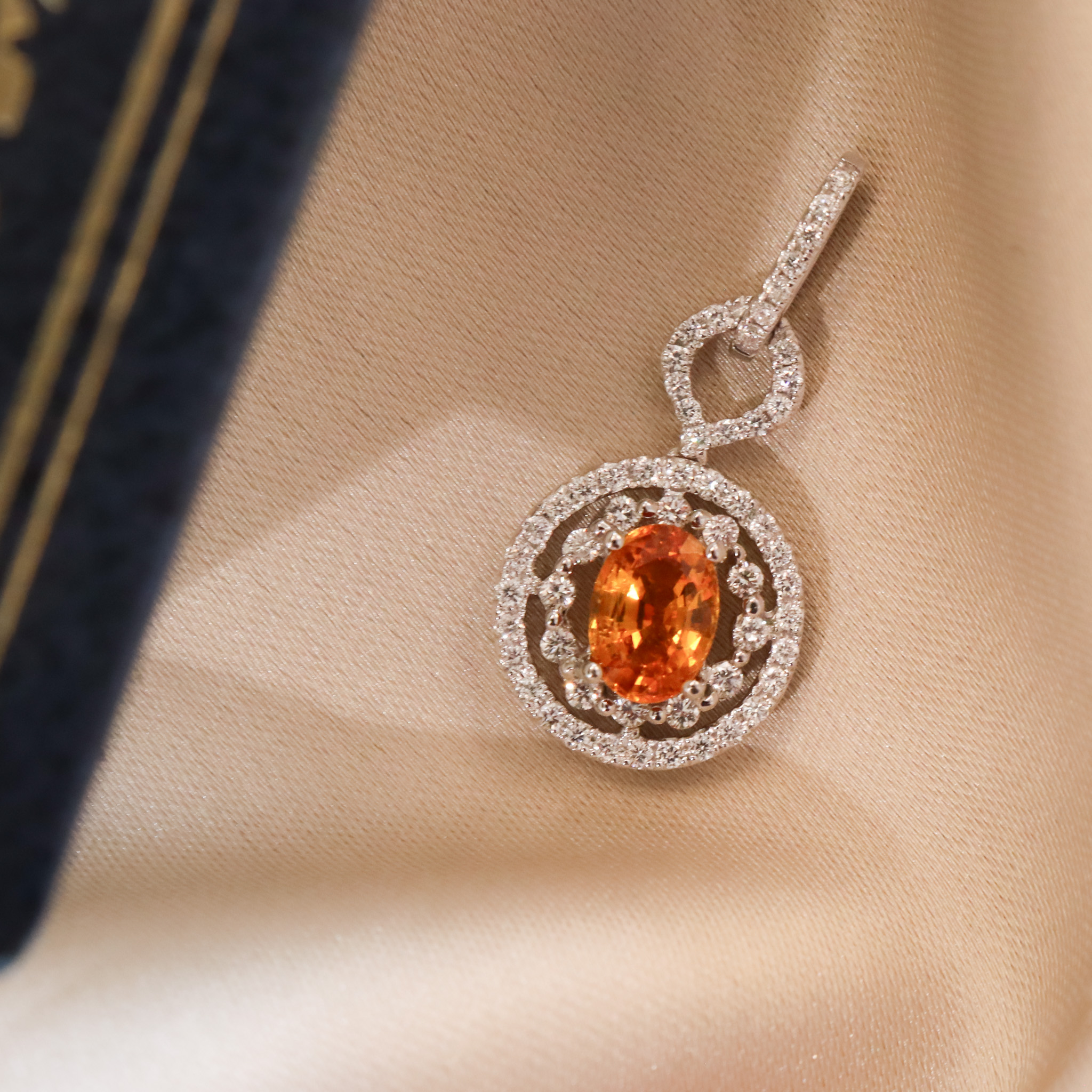 This modern sapphire and diamond pendant is a sparkling beacon; perfect for everyday wear and special occasions.