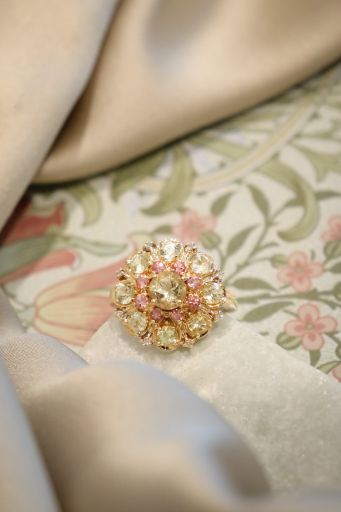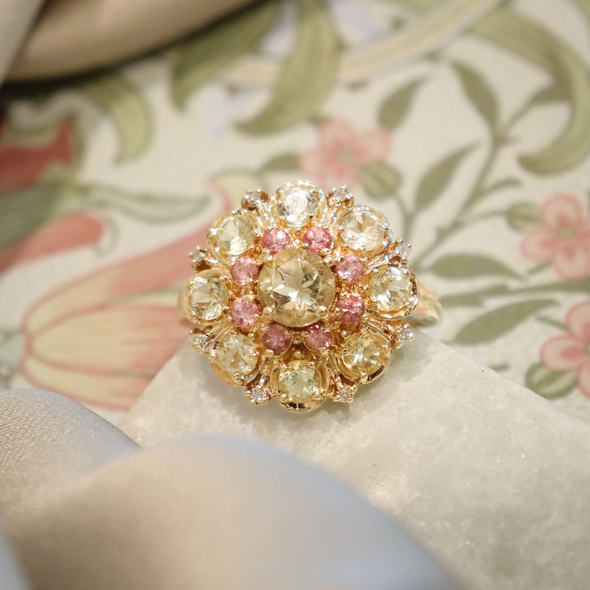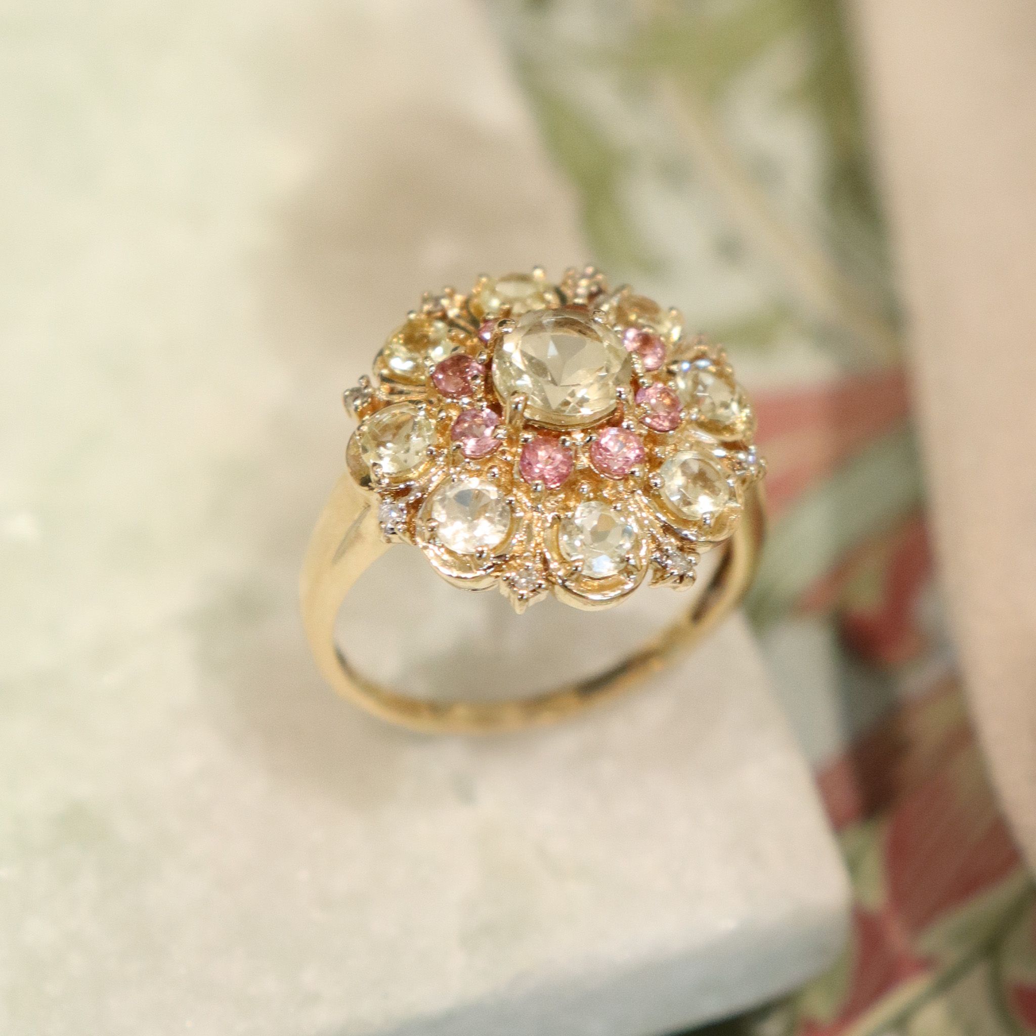 10ky Lemon Quartz & Pink Topaz Ring with Accent Diamonds
