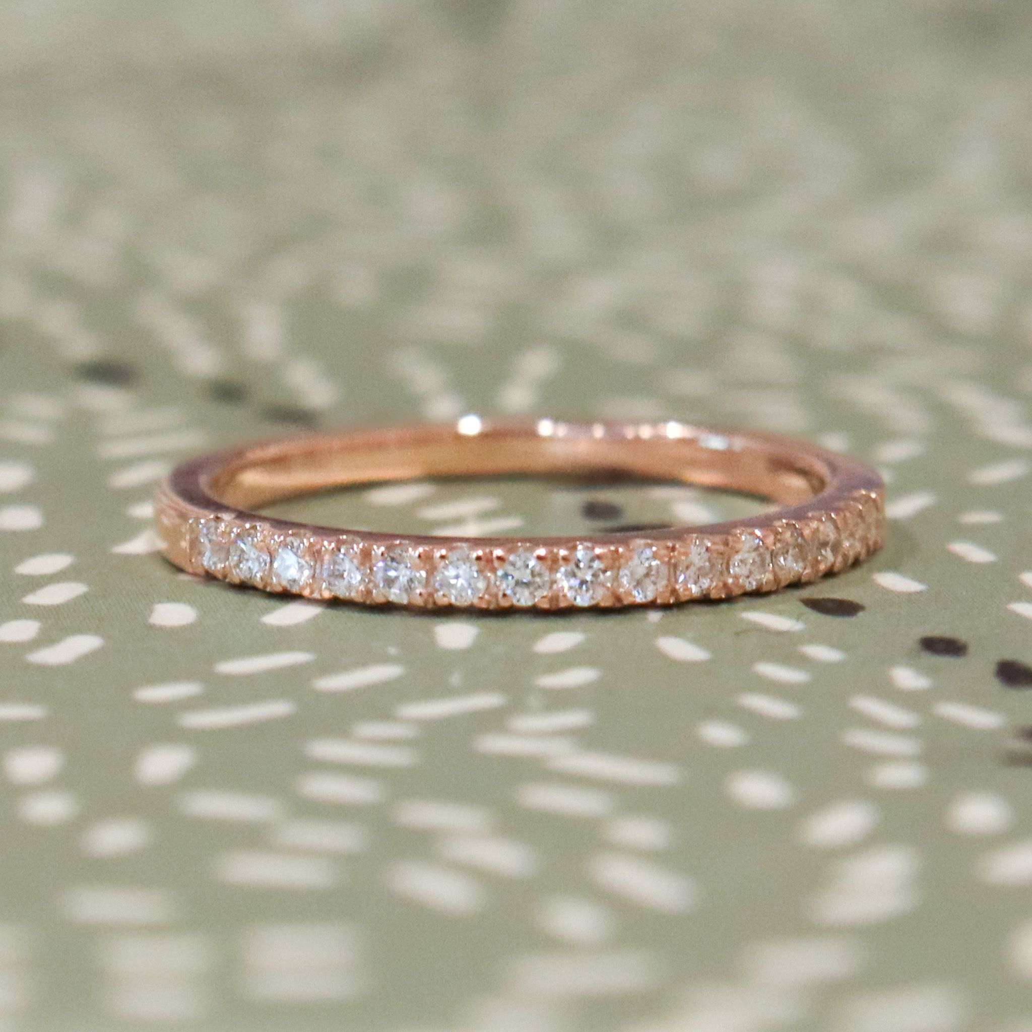 A classic style and great for everyday wear. Each diamond in this band is held tightly by 4 claws. Add this to your ring stack, or let it sparkle alone.