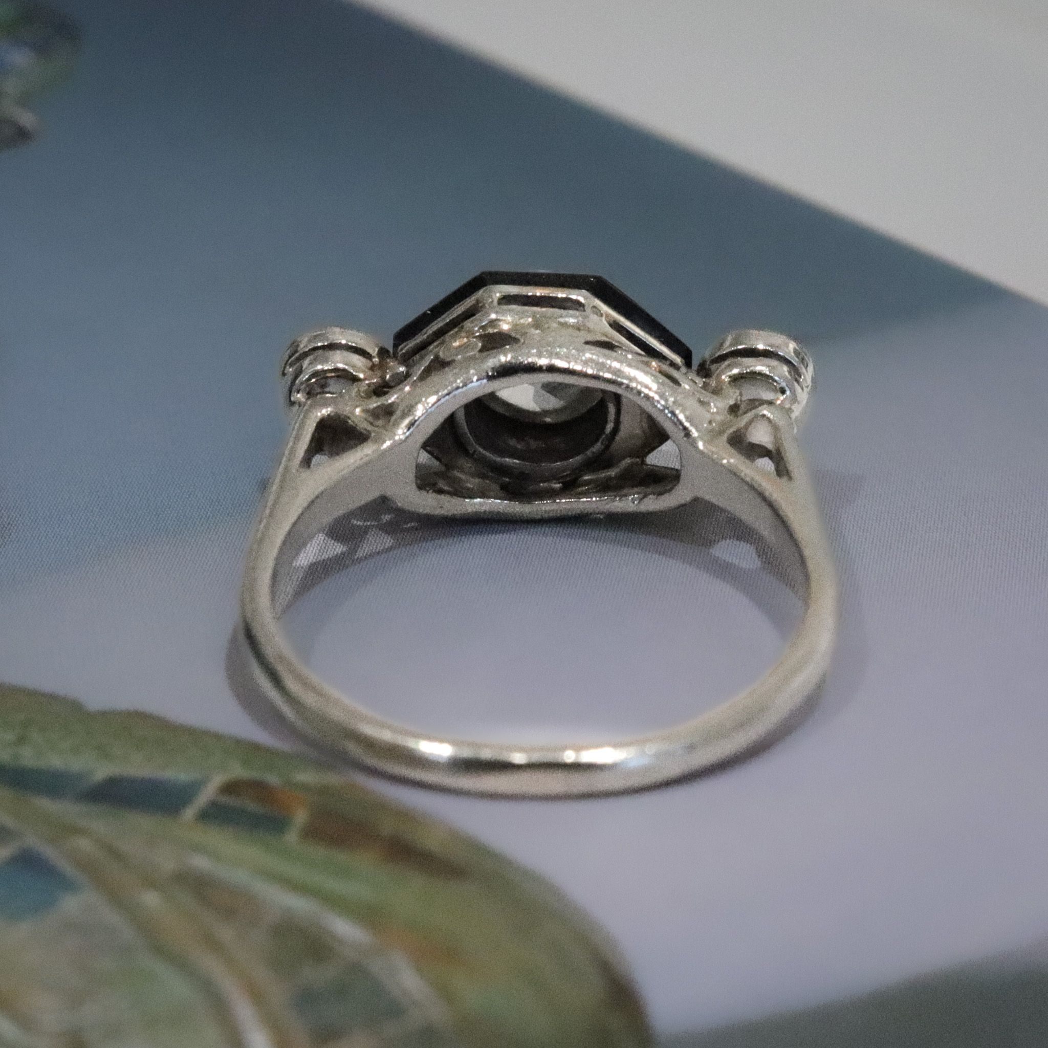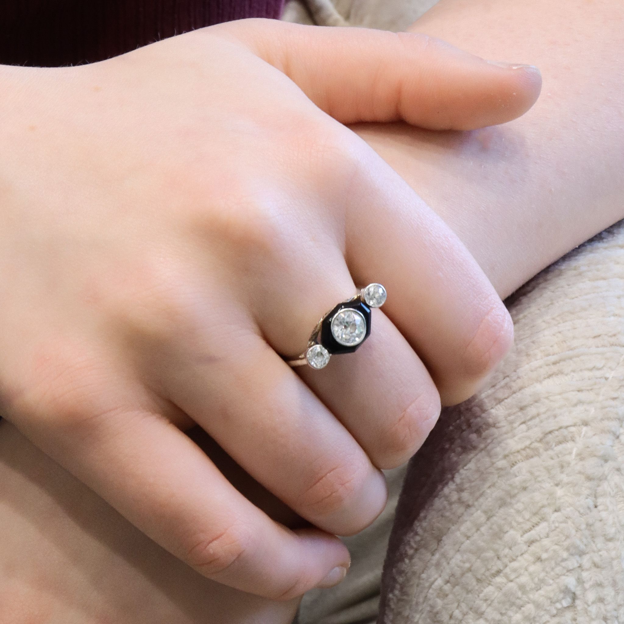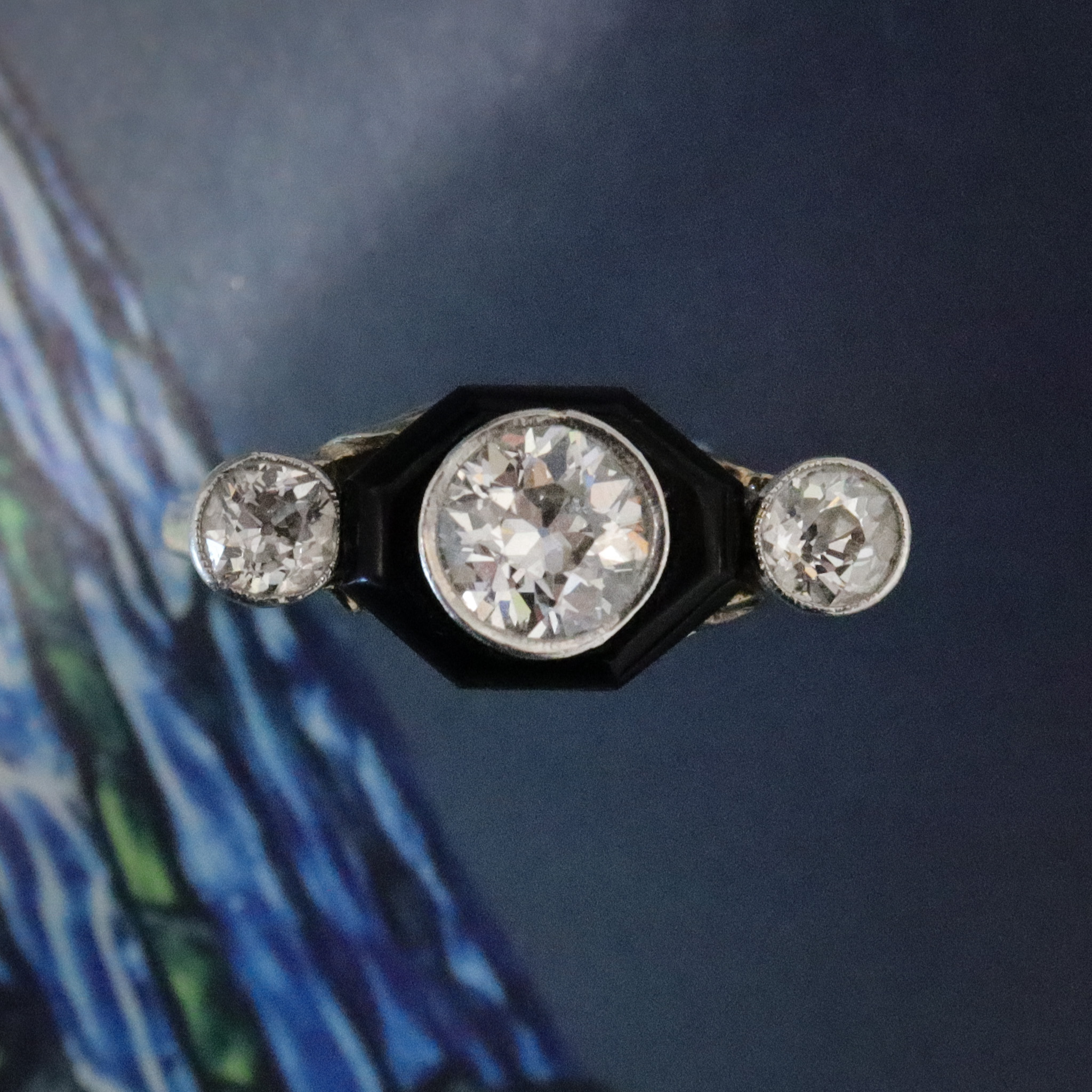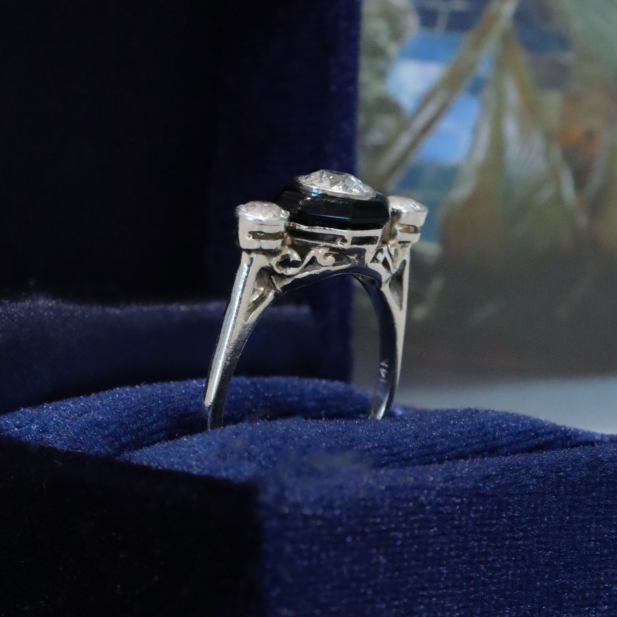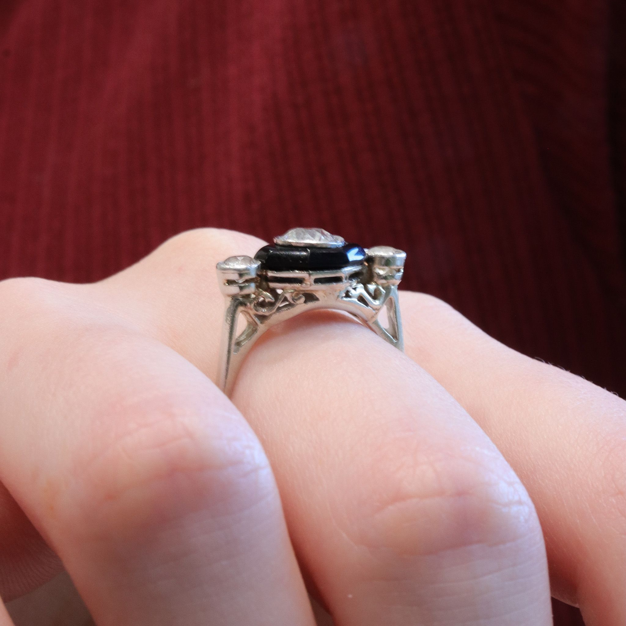 Long and layered pearl necklaces were in high demand, especially with intricate, gemstone-embellished clasps to be worn in the front. Onyx, diamond, aquamarine, and ruby were the key stones of the 20s, typically used as a clean contrast to the detail of the gold. After the creation of 18k white gold, it was often combined with platinum after the First World War. The sturdiness of platinum meant safe gem coverage, while the white gold was much more affordable. Rings often had white gold bands, with a platinum setting for the stone.