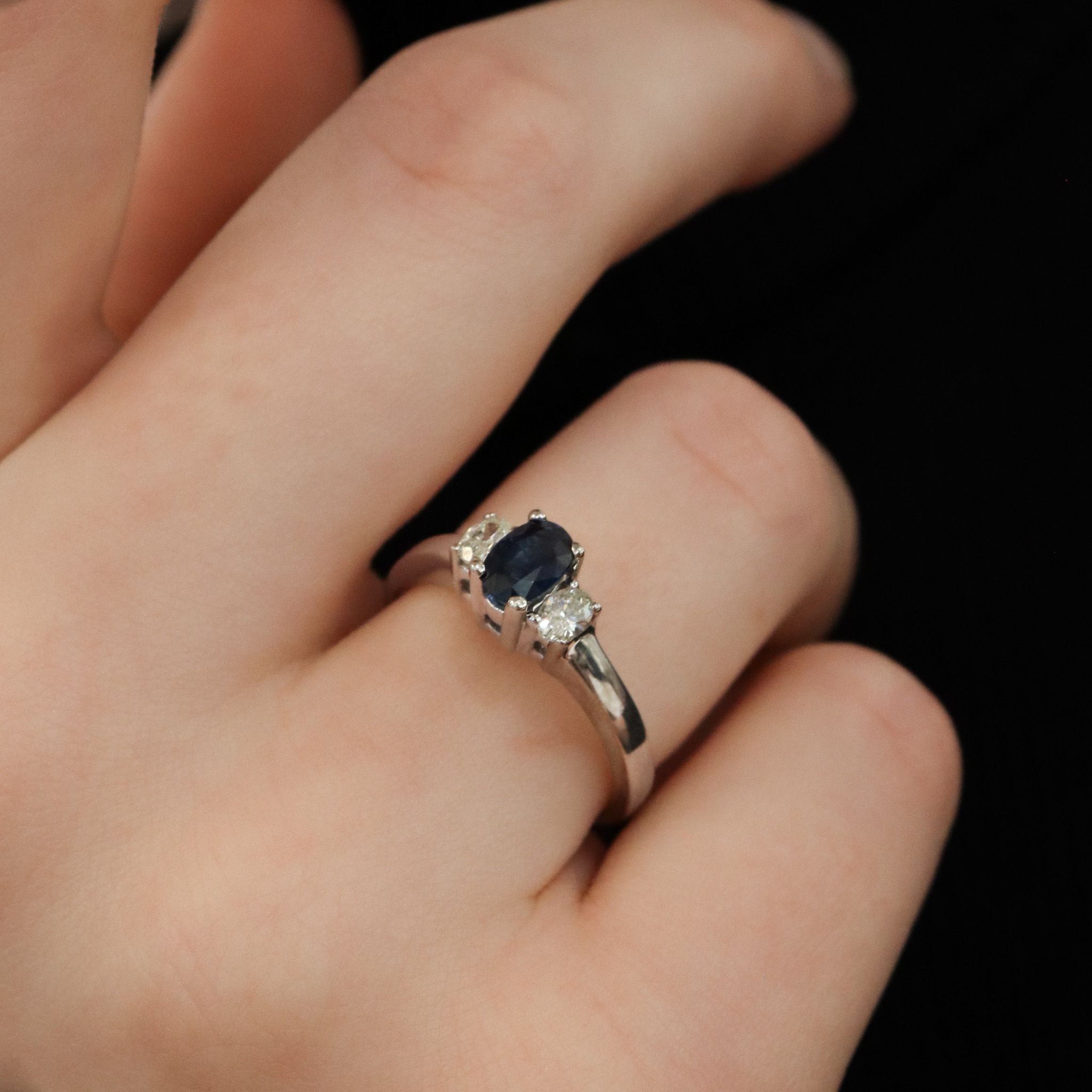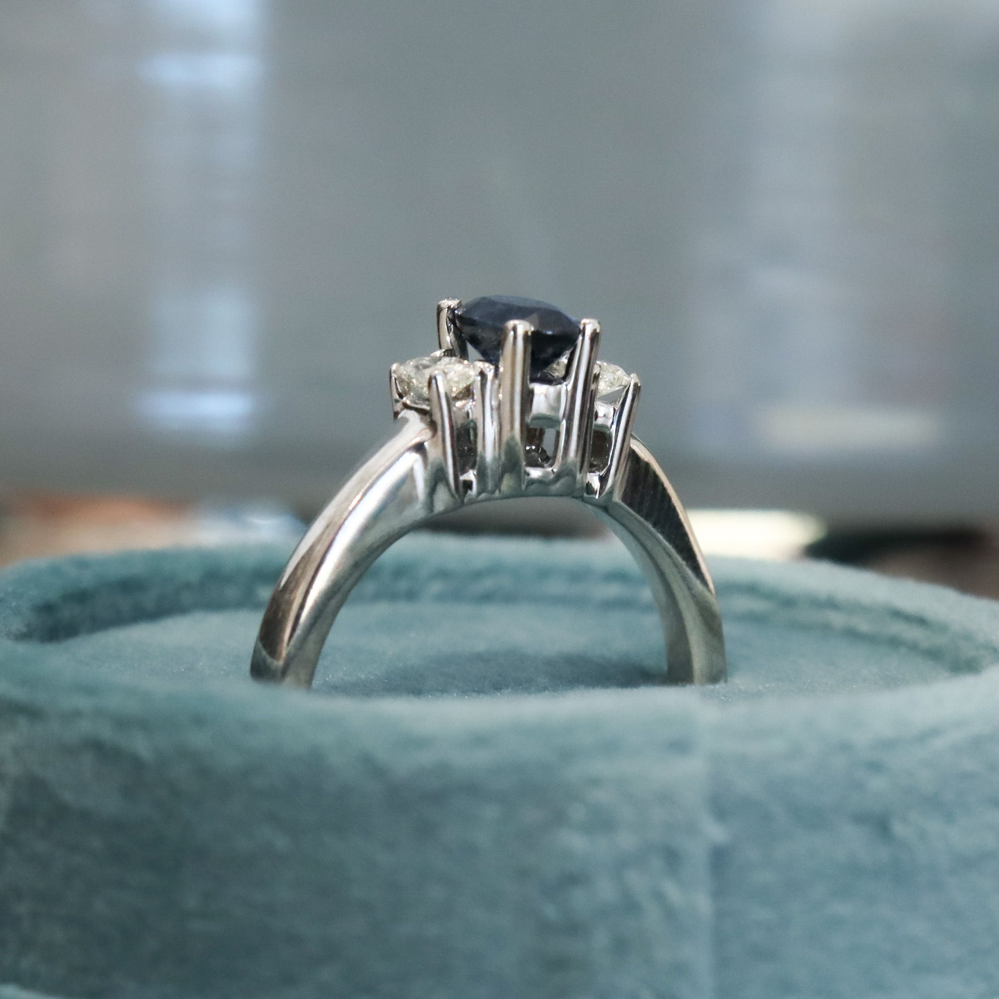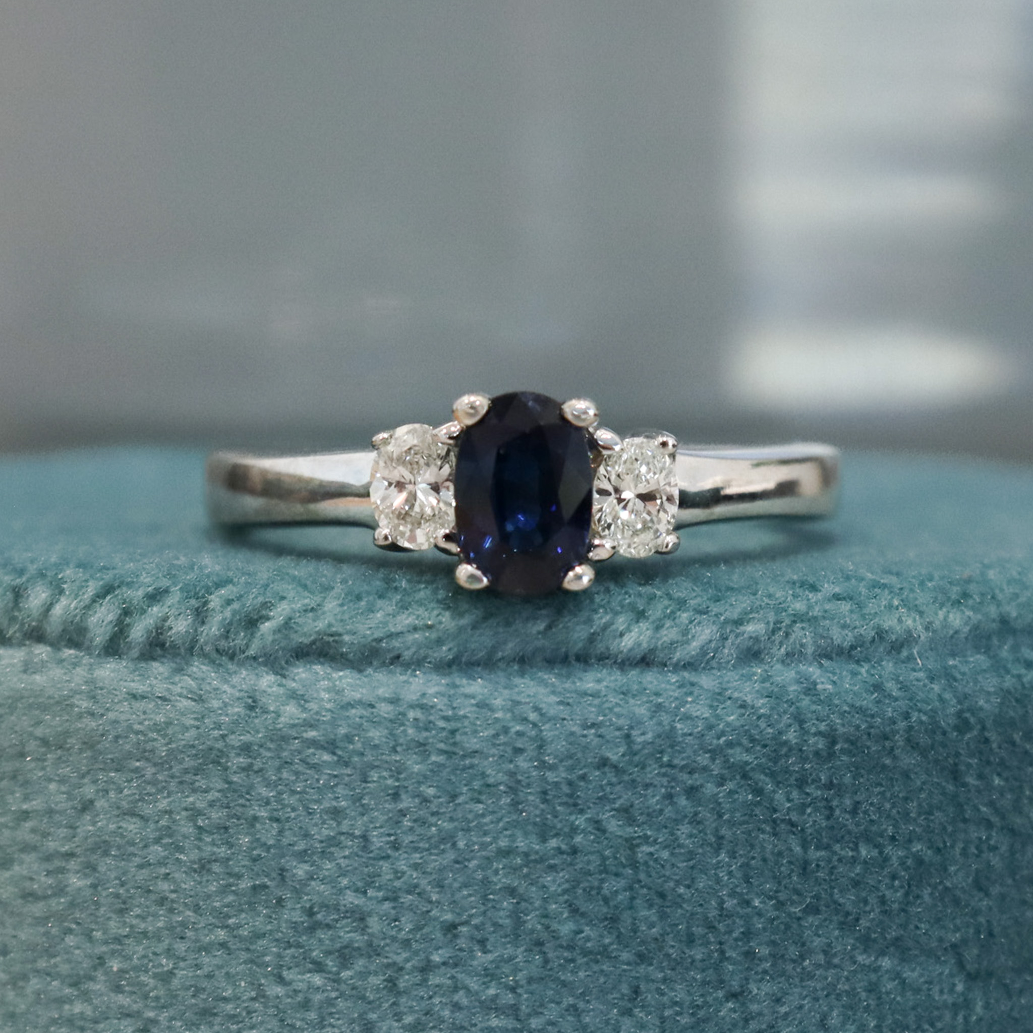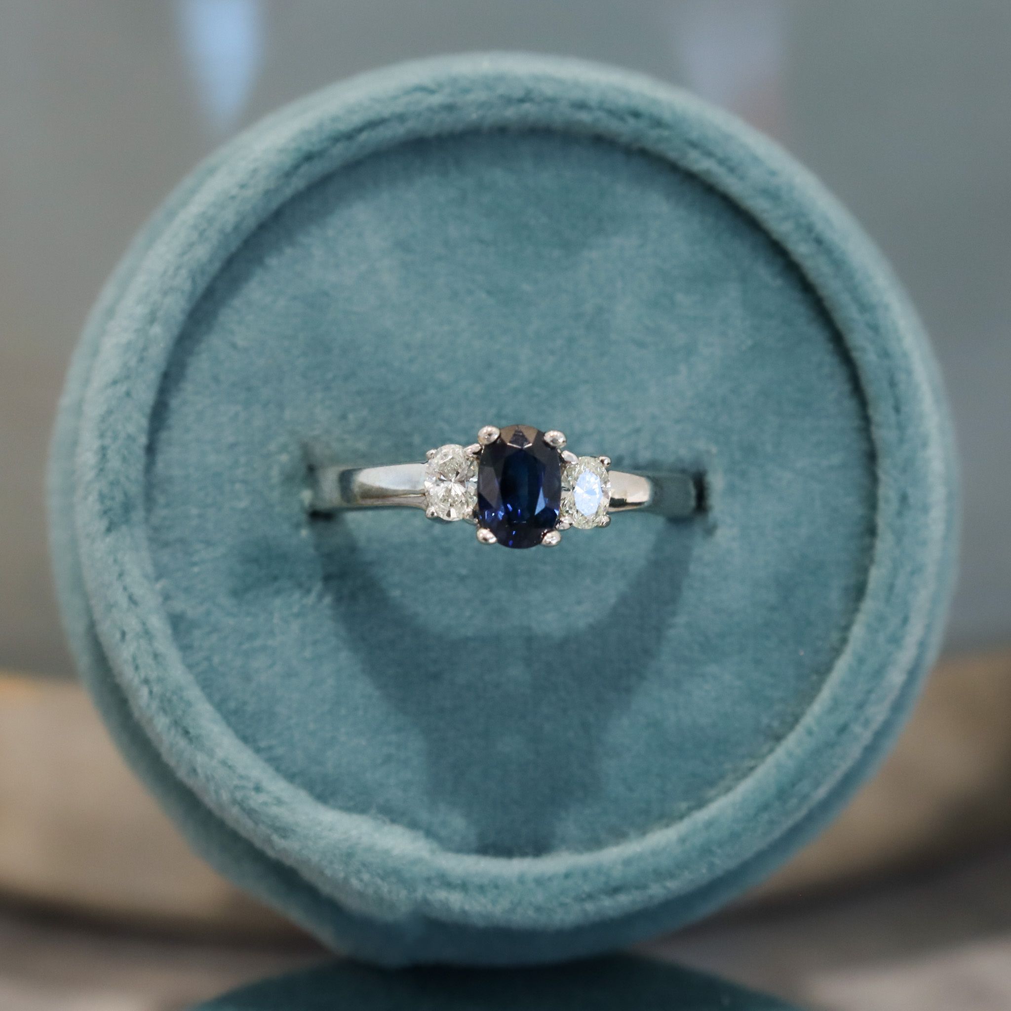 Classic & timeless, this 3 stone sapphire & diamond ring is dainty and chic on the hand, but built to stand up to daily wear. Perfect for a classic gemstone engagement ring or pop of colour on your right hand.