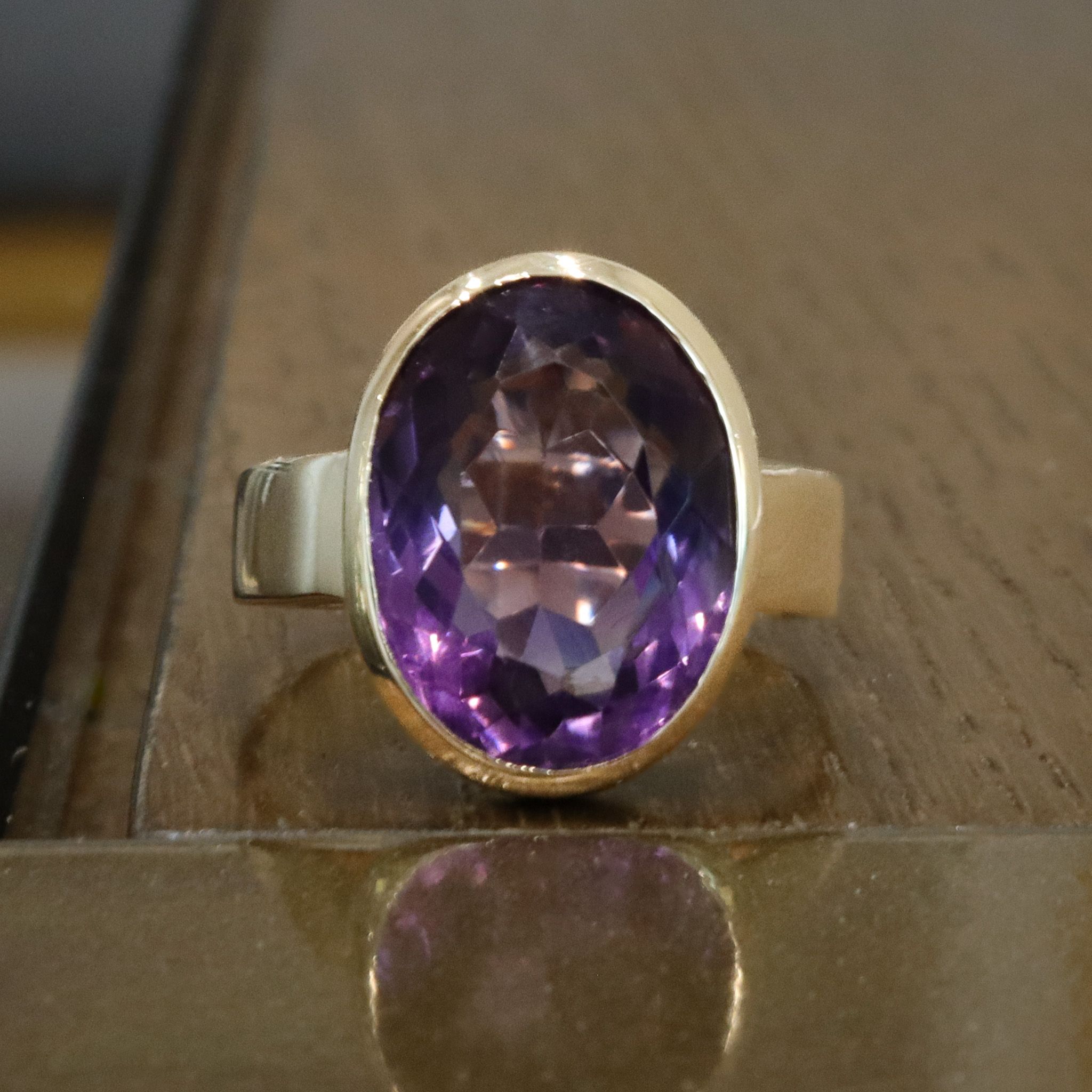 Elegant, bold, and rich in life; a fabulous everyday statement piece. This vintage Birks amethyst ring has a beautiful cut, depth, and saturation to it.