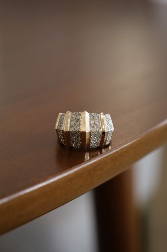 This vintage 14ky diamond Birks fashion ring is sure to catch your attention. Substantial, with generous finger coverage, this bold design offers a bold look and lots of sparkle.