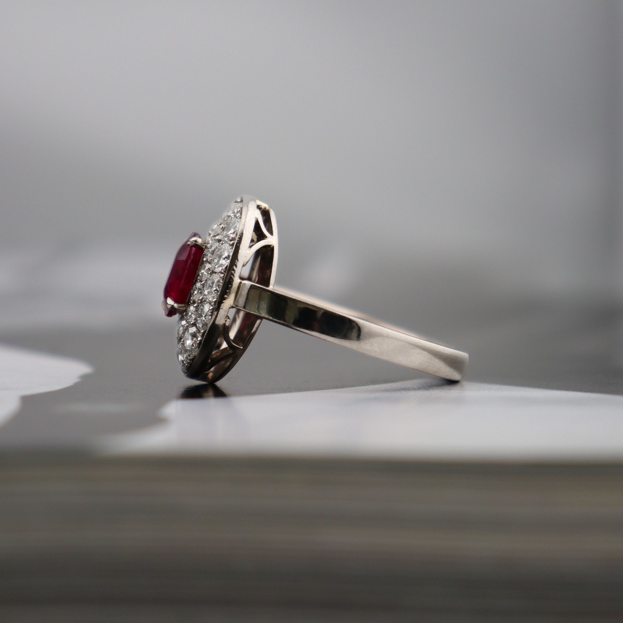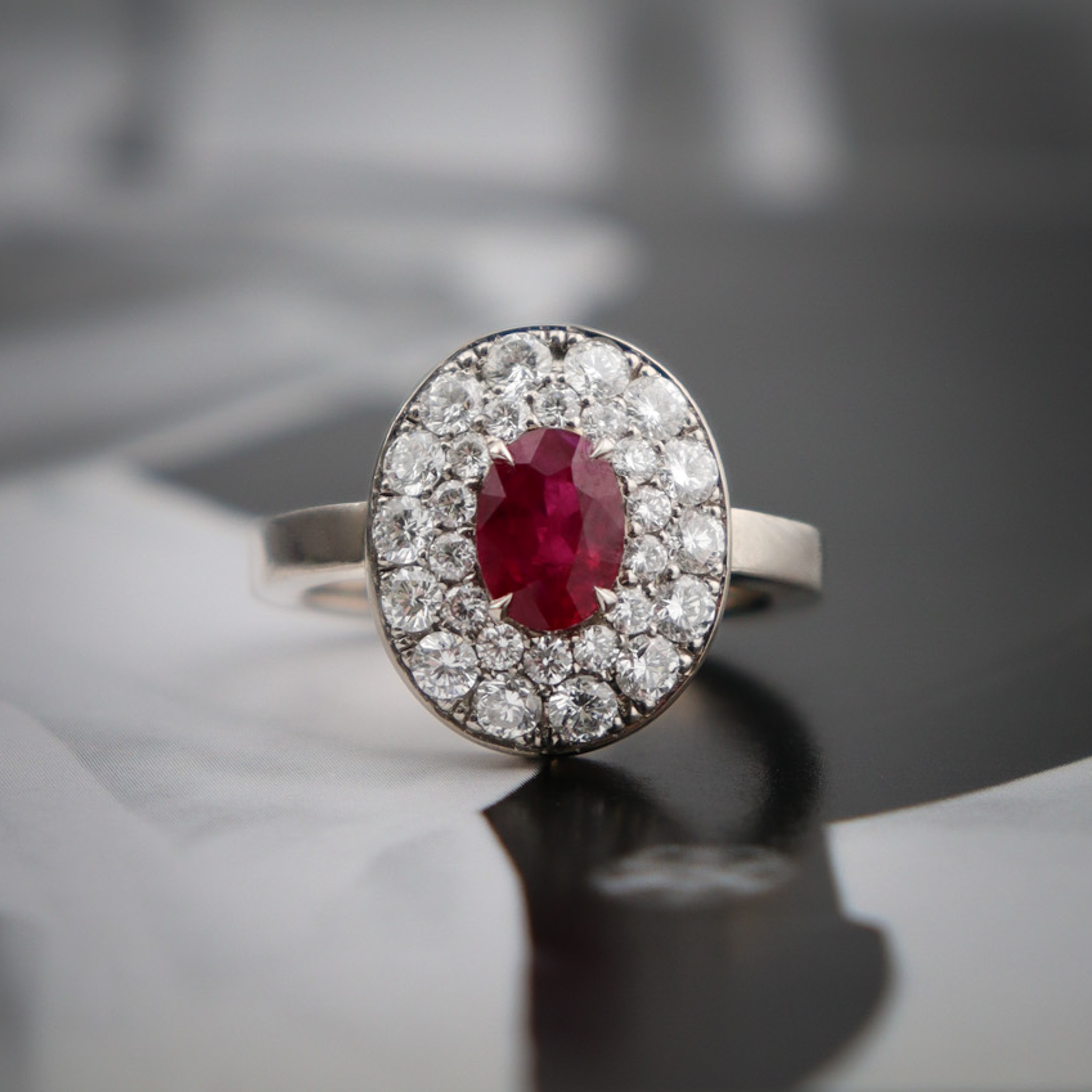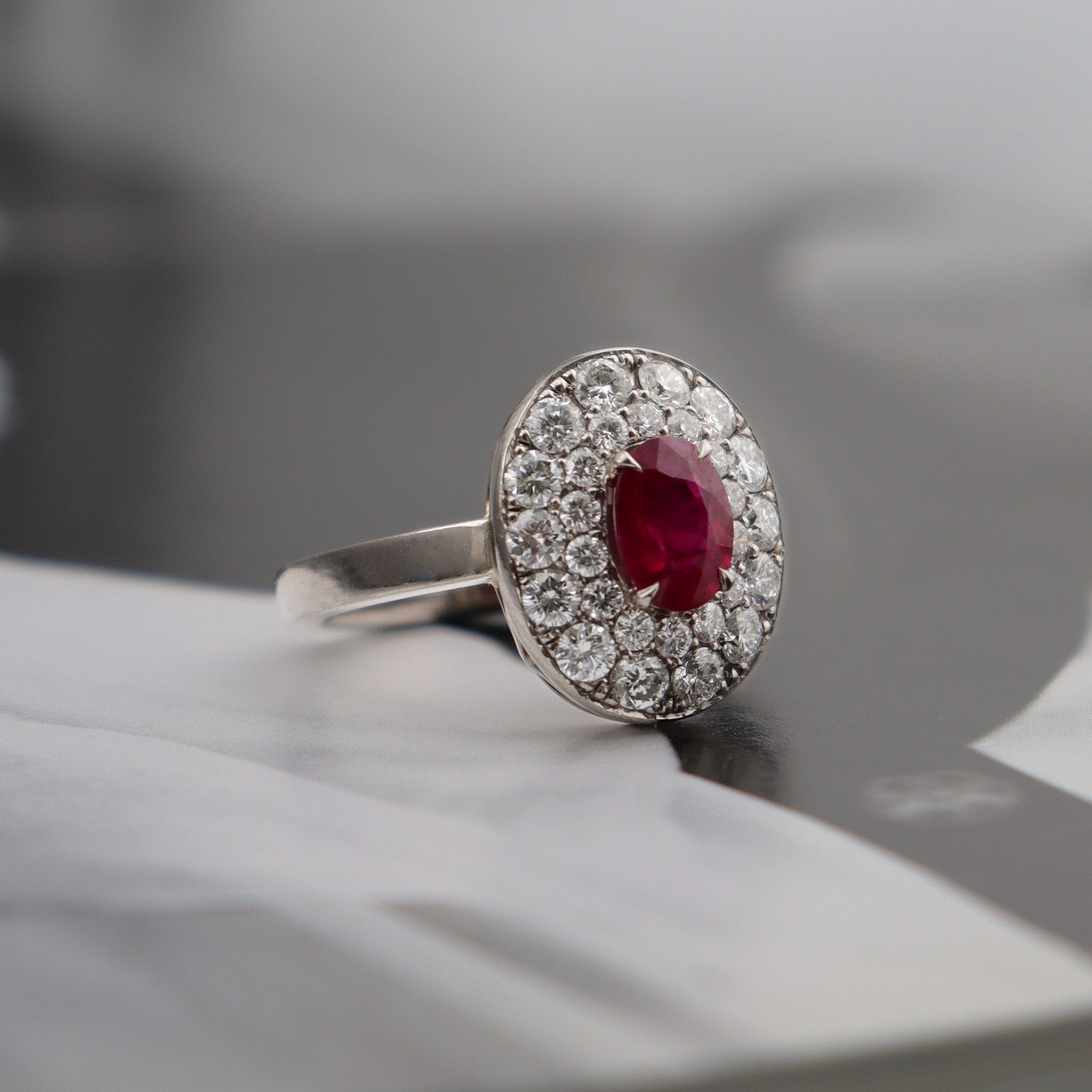 ring is sure to make you swoon. This ruby deserved a double halo of