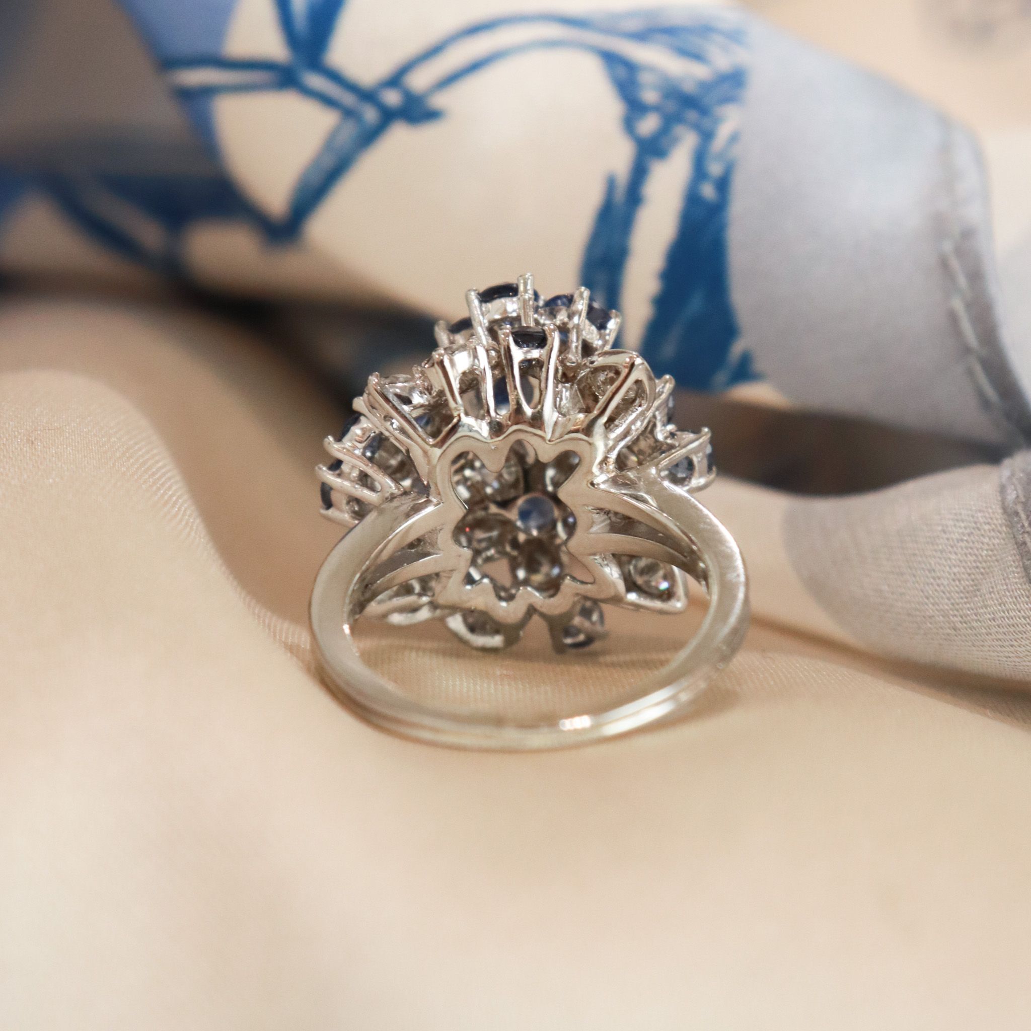 A bouquet of flowers that will never fade. This expertly crafted cluster of flowers are made of sapphires & diamonds, set in 18k white gold. Who dreams of spring? This ring delivers flower filled dreams.