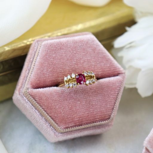 During this Era platinum and precious metals were once again rationed for the war effort. Making yellow gold the metal choice of the time. Various alloys were used to create thinner sheets of metal which gave jewellers a chance to experiment with new finishing techniques. With these new alloys came various shades of gold, sometimes seen in a single piece. Gemstones were also in short supply meaning a lot of pieces were made with more metal versus housing gemstones. Less expensive stones became more popular including topaz, amethyst, aquamarine and citrine. Diamonds were reserved for the use of pave settings and as accent stones. It was not uncommon during this time to commission a bespoke piece using metals and gemstones already owned.